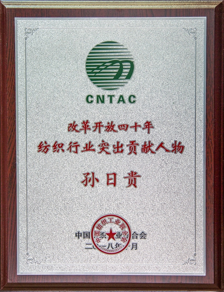 2018年10月16日,中國紡織工業(yè)聯(lián)合會第四屆第四次常務理事擴大會議在上海召開,公布140位“改革開放40年紡織行業(yè)突出貢獻人物”。 中國紡織工業(yè)聯(lián)合會特邀副會長、孚日控股集團董事長孫日貴榜上有名、登臺領獎。