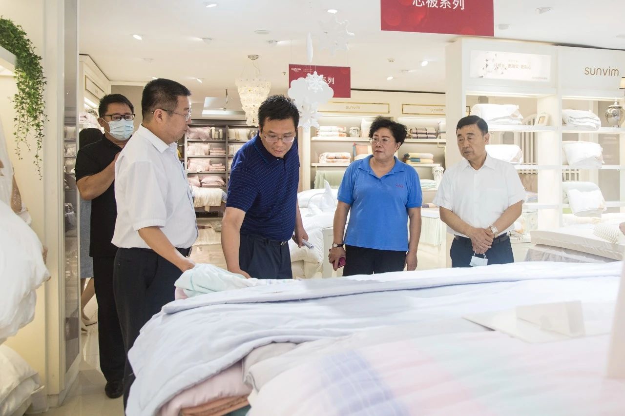 在參觀家紡產(chǎn)品時(shí),陳達(dá)一行現(xiàn)場(chǎng)感受了孚日集團(tuán)出口亞洲、歐洲、美洲、澳洲等國(guó)際市場(chǎng),以及以孚日、潔玉、賽維絲等自有品牌開(kāi)拓國(guó)內(nèi)市場(chǎng)的系列產(chǎn)品。